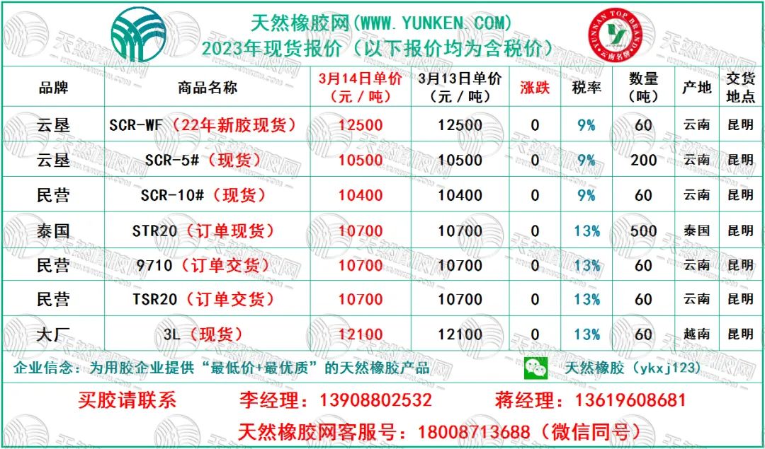 天然橡胶网2023年3月14日橡胶报价
