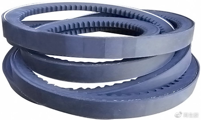 3.橡胶三角带橡胶三角带一般指V带,主要用于传递力和物品运输的机械设备,在使用过程中具有占地面积小、传动效率高、噪声小、易安装等优势。普通橡胶三角带主要包括包布胶、帘布胶、压缩层等,不同胶层对所用胶料的物性需求不同。因此掺用橡胶粉降低三角带生产成本时,各胶层中胶粉的规格与用量也不相同。