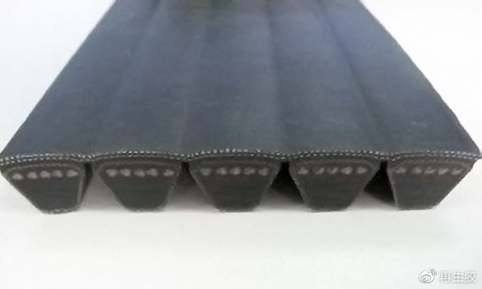 4.汽车V带汽车V带属于橡胶V带中的一个大类,主要包括压缩层、伸张层、线绳浸胶和包布胶,一般以天然橡胶与丁苯橡胶为主要原料加工而成,其中压缩层胶可适量添加精细胶粉或活化胶粉,当天然橡胶/丁苯橡胶总量为100份时,可添加30-50份的橡胶粉,有效降低原料成本,改善胶料工艺性能。在实际生产中,建议将充分塑炼的天然橡胶、丁苯橡胶和胶粉投入密炼机中混合几分钟后再加入配合剂。