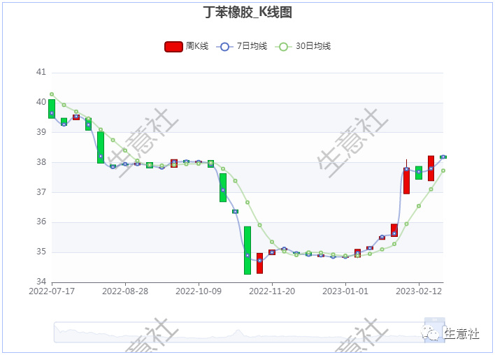 从生意社橡胶产品7-30K线图来看,丁腈橡胶、顺丁橡胶、丁苯橡胶等合成橡胶7日均线近期基本处于30日均线上方,技术面看后期合成橡胶将仍以上行为主。