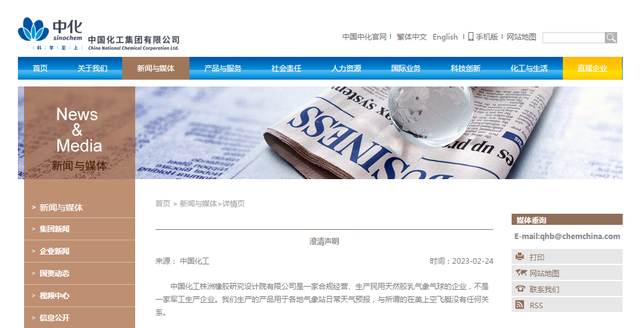 中国化工株洲橡胶研究设计院有限公司是一家合规经营、生产民用天然胶乳气象气球的企业,不是一家军工生产企业。我们生产的产品用于各地气象站日常天气预报,与所谓的在美上空飞艇没有任何关系。