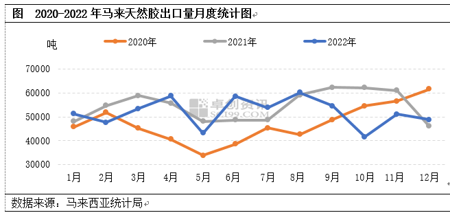 【导语】马来西亚作为全球天然橡胶的主要生产国以及出口国,伴随出口数据的公布,12月份马来西亚天然橡胶出口量环比下滑4.5%同比增长6.12%,仍处于历史同期相对低位水平。预计2023年1月份马来西亚天然橡胶出口量或较2022年12月有所下滑的可能性大。
