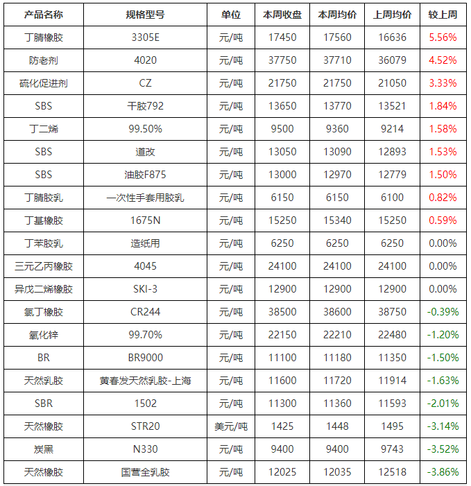 卓创资讯监测橡胶主要原料一周涨跌一览(20230204-0210)